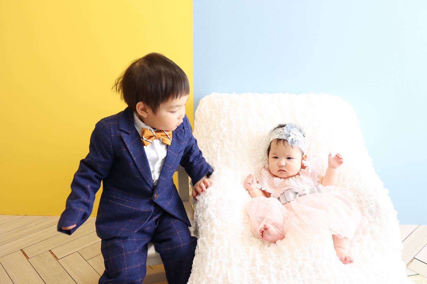 元気いっぱいな男の子とママの抱っこで女の子がご来店🏡前回お兄ちゃんのお宮参りで来てくださったリピーター様です^^妹ちゃんとははじめましてだね♪