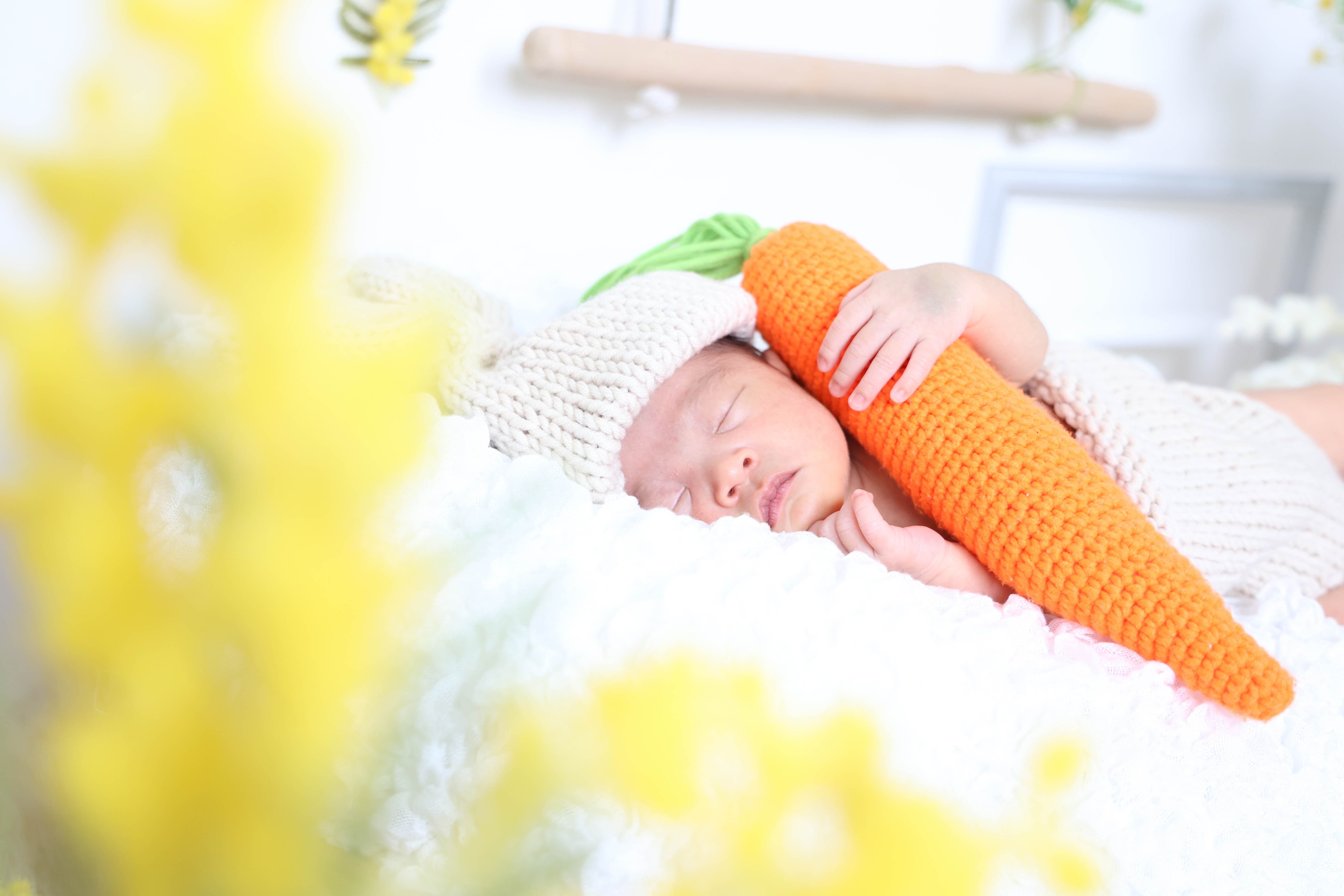 衣装はパパママそれぞれ決めてくださいましいた🐰まずはオムツ姿から撮影を始めましょう🎬おくるみで巻かれると少し窮屈で泣けてしまったけど合間に寝てくれたりとリラックスしてくれてました💤