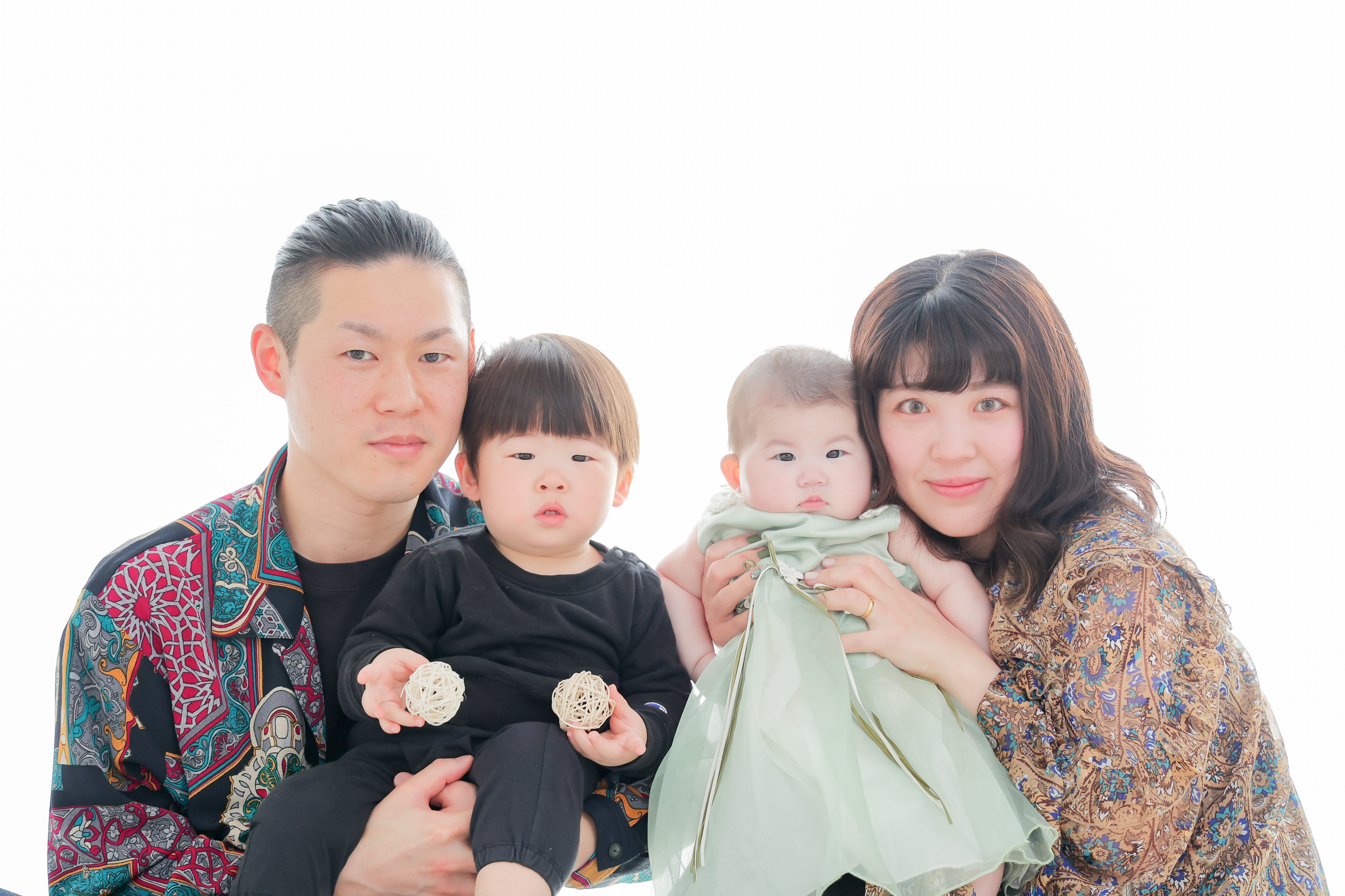 まず最初はご家族カットから撮っていきましょう✊🏻衣装はパパとママが決めてくれました🌸お兄ちゃんはパパに抱っこされて嬉しそうだね(﹡ˆ﹀ˆ﹡)妹ちゃんもママと一緒で安心するね❣️お兄ちゃんの好きなキャラクターぬいぐるみを見せると指を指して喜んでくれました(o^∀^o)