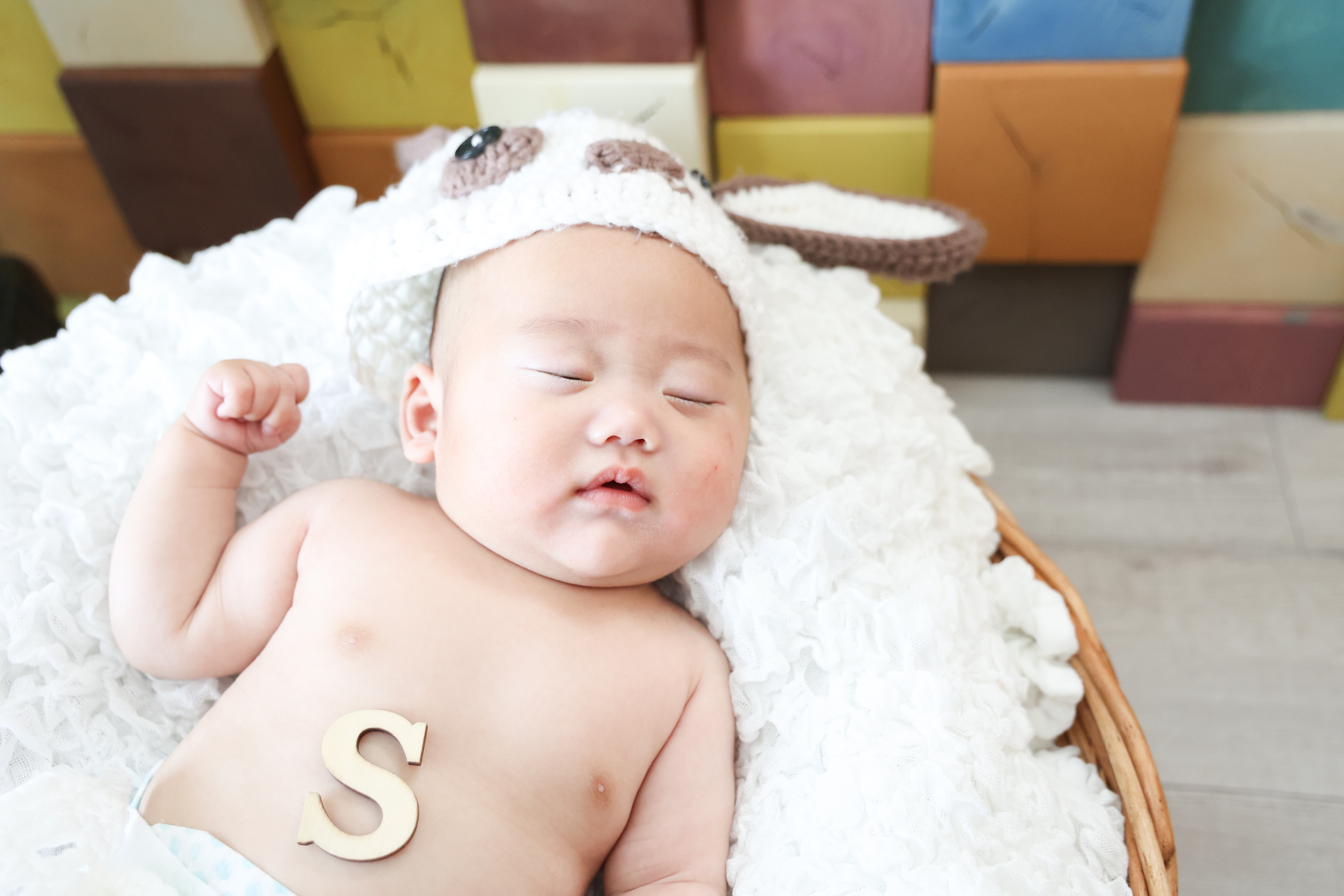 衣装を決めたらまずはオムツのカットからスタートです🎬マットの上にごろりんと寝転がるとカメラをじーっと覗きます👀目が合うと優しく微笑みます☺️お腹が空いたのでミルク休憩です🍼お腹もいっぱいになったので次のカットです❣️