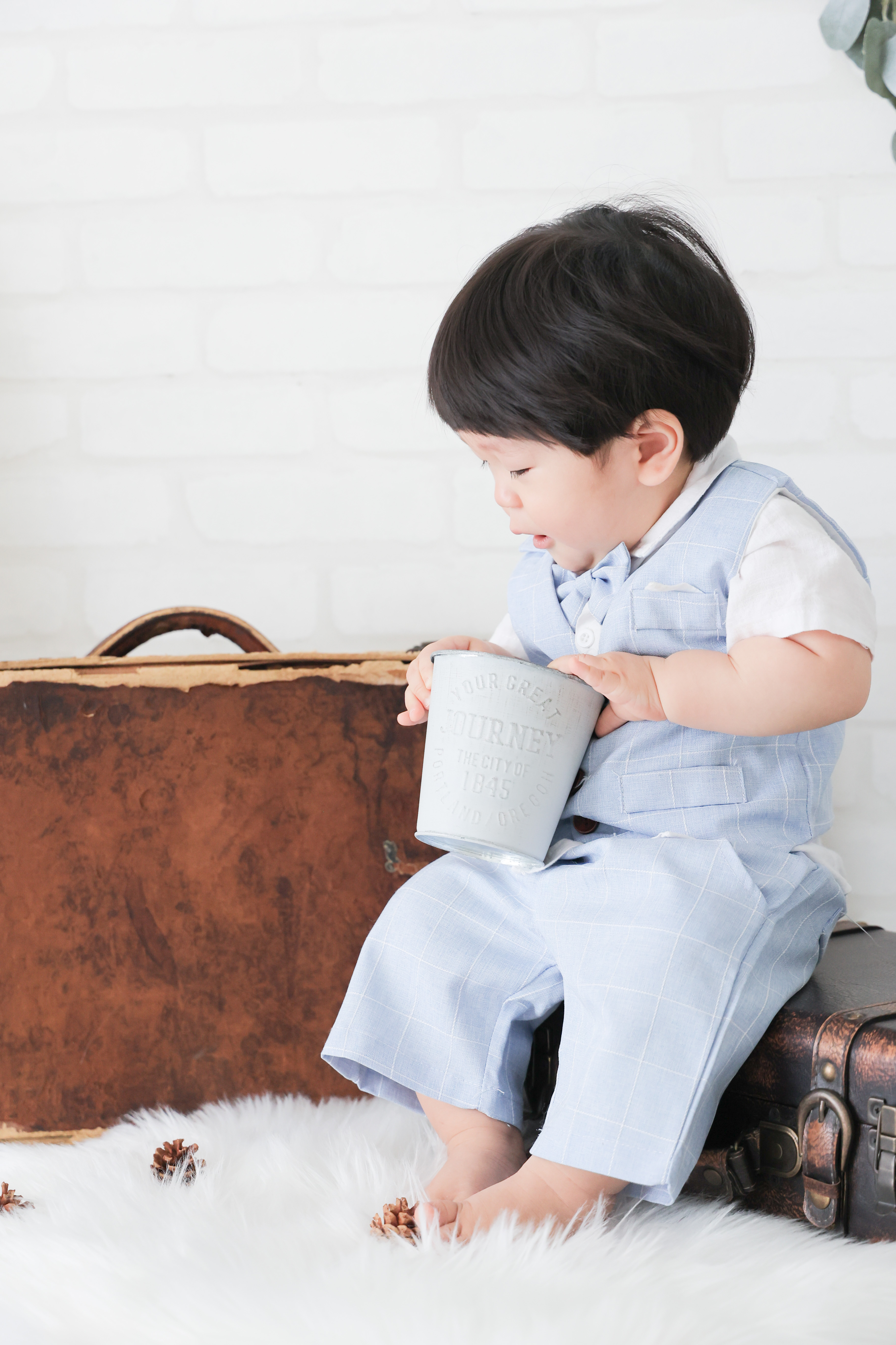 セットアップのシーンでは、不安にならないようにママに近くにいてもらおうね❣️松ぼっくりが気になって手にとってポイポイしてくれたね😊トランクにちょこんと座るとカンカンを覗き込んでくれる姿がかわいかったな〜