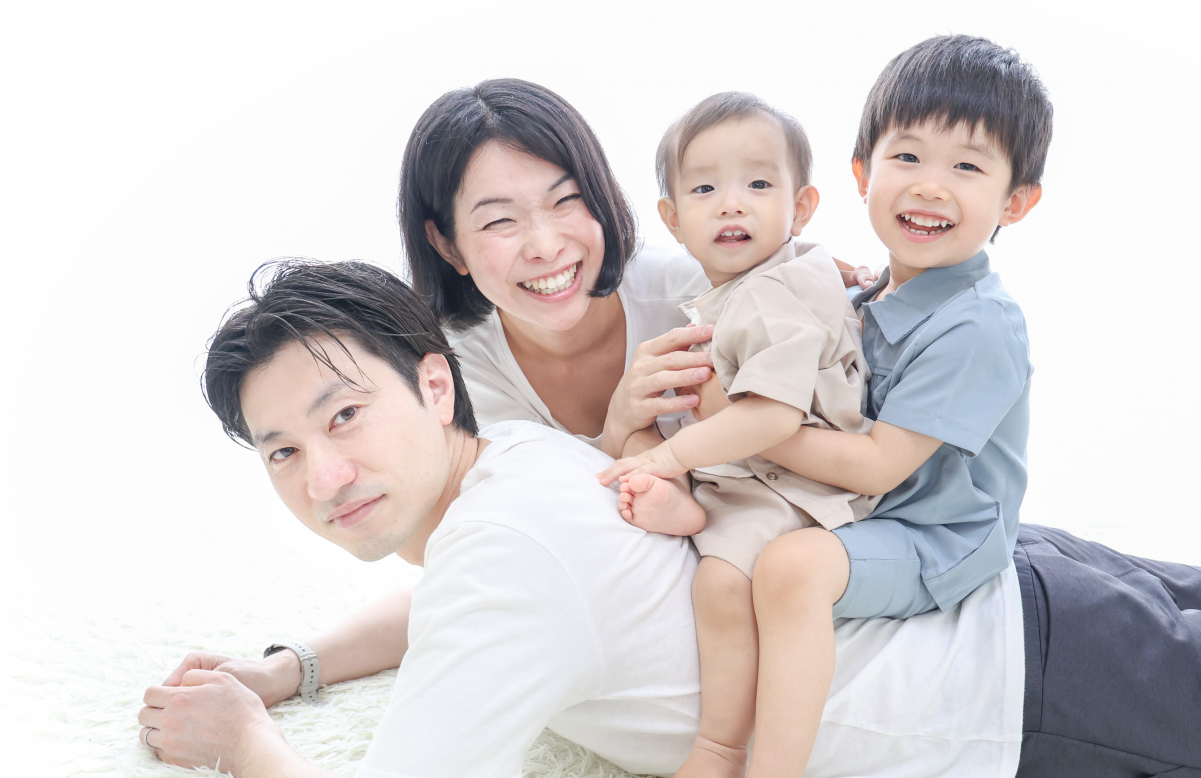 まずは裸ん坊の撮影からスタート🎬ママとひっついていないと寂しくて涙が出ちゃいます💧ボールや積み木で気を紛らわせて遊びながらゆっくり撮影しようね❣️次はお兄ちゃんと色違いのお洋服に着替えてご家族カットにうつります👨👩👦👦ママの抱っこだと安心して可愛い笑顔を見せてくれました💖