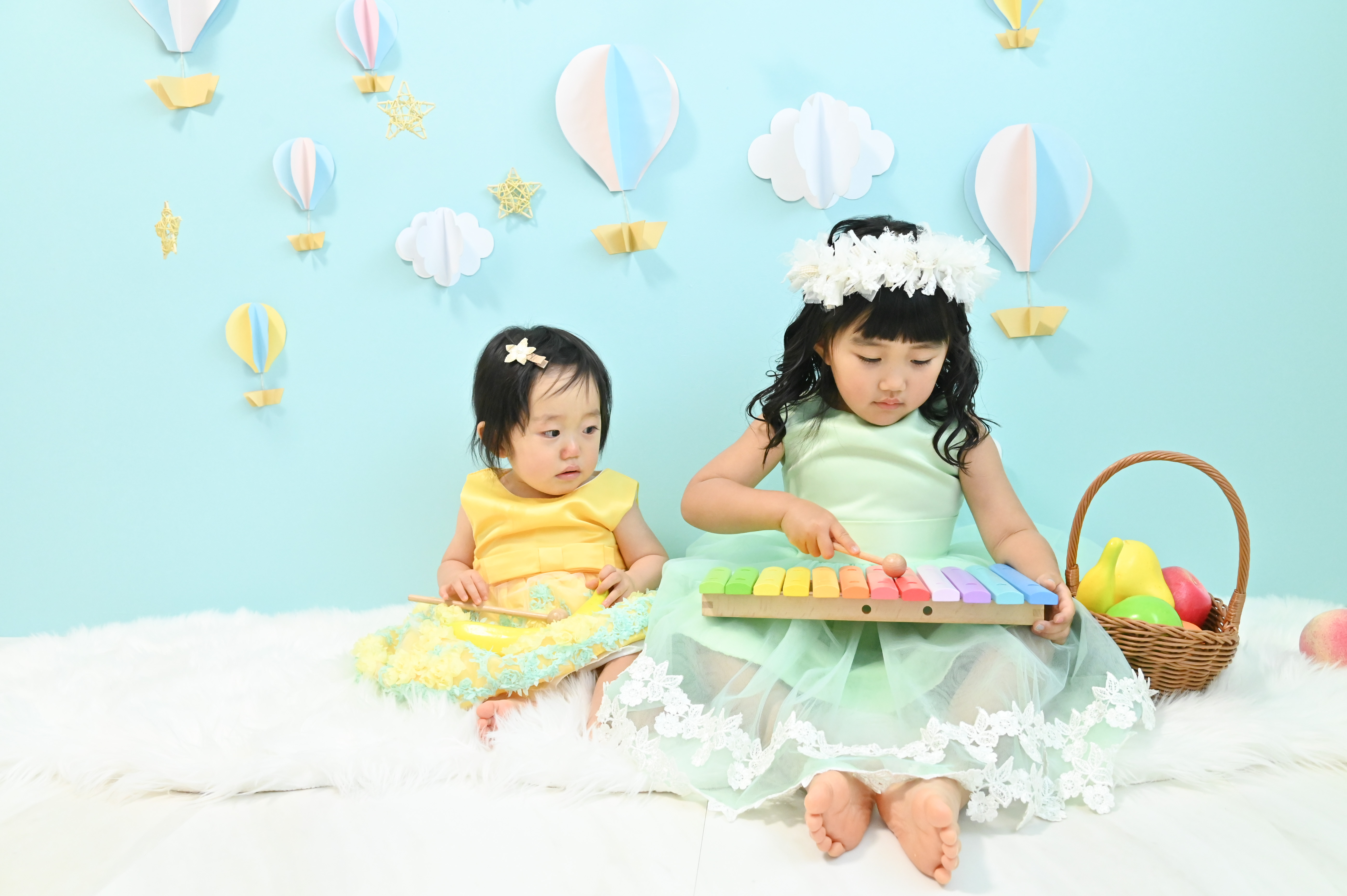 仲良し姉妹がご来店🏡前回は岐阜店をご利用いただいた大切なリピーター様です🌟今日はお姉ちゃんの七五三と妹ちゃんのバースデー写真をお撮りします🫧