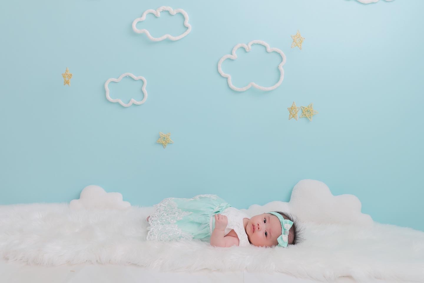 気分を変えて2階へ行ってみよう🌸ミルクを飲んでお腹がいっぱいで眠たくなっちゃったね( ¯ ¯ )ᐝ何とか眠気に耐えつつカメラの方をじっと見てくれます📷最後はふわふわマットの上でお星様と一緒に撮って撮影終了です(*ˊ˘ˋ*)。♪最後まで頑張ってくれてありがとう❣️
