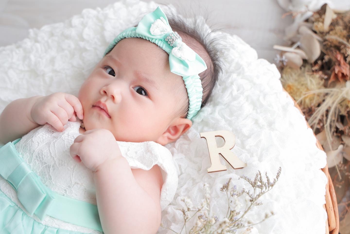 衣装が決まったらさっそくオムツのカットからスタート🎬不思議そうなお顔で『どこで音が鳴ってるんだろう?』とキョロキョロ👀帽子を被ると気になって上の方を見ていました🤍お持ち込みの産着に包まれると動きたいのか元気よく手足をバタバタと動かしていました(๑ ᴖ ᴑ ᴖ ๑)